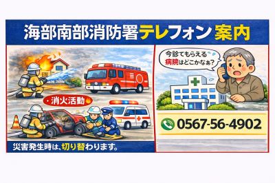 海部南部消防本部 | 0567-52-0119 | 0567-52-3114 |