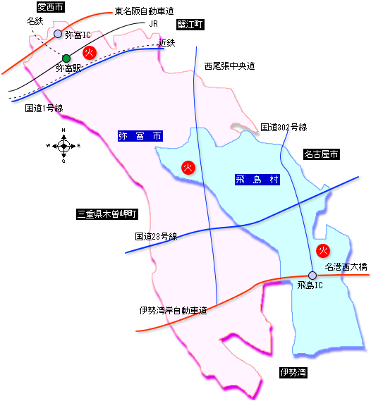 鉄道は、管内北部にJR関西本線、名鉄尾西線及び近鉄名古屋線の弥富駅があり、 相互に乗換えが容易で、名古屋までは15分と至近距離にある地域です。